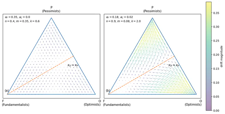 This paper reformulates the Lux-Marchesi (LM) asset-pricing model within an evolutionary game framework to examine how payoff-driven strategy selection shapes market dynamics. We consider three trading types-fundamentalists, optimistic chartists, and pessimistic chartists-whose population shares evolve endogenously through a discrete-time logit-replicator dynamic with mutation. As in LM, prices adjust in response to aggregate excess demand, constructed as a composition-weighted sum of strategy demands, while strategy payoffs are computed from realized trading profits averaged over a finite evaluation window. The resulting coupled price-selection system captures a competition between stabilizing mean-reverting forces (fundamental trading) and destabilizing directional forces (chartist trading), generating distinct market regimes. To provide analytical insight, we study a reduced two-strategy specification and characterize the stability of boundary regimes, as well as the conditions for tipping when the chartist share crosses an interior threshold. Numerical experiments across baseline, stable, bistable, and switching parameterizations demonstrate that endogenous reallocation of trader shares can produce bubbles and crashes, heavy-tailed return distributions, and volatility clustering. Importantly, these stylized facts arise from persistence and switching in the composition dynamics, rather than from imposing non-Gaussian exogenous shocks.